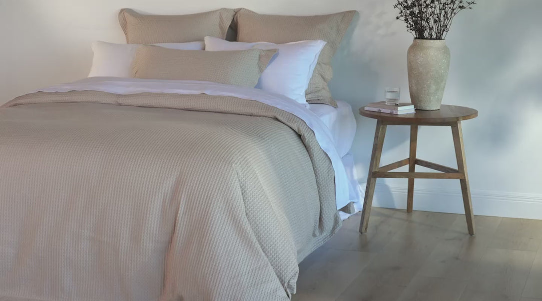 Our Hudson waffle bed linen has been reimagined in a beautifully soft natural hue for relaxed, neutral styling on every bed.