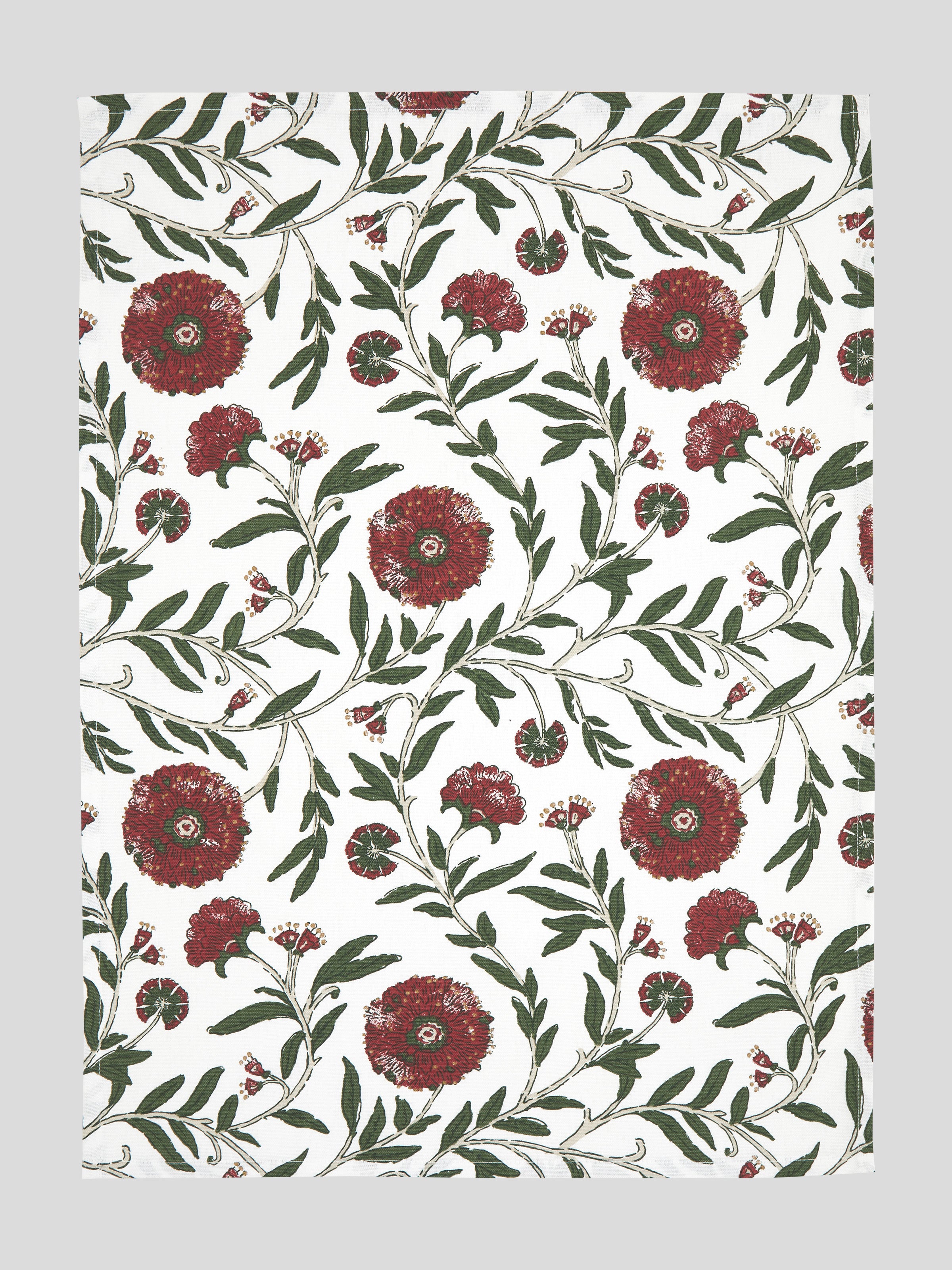 Welcome Christmas into your home with our Festive Flora kitchen range, designed to make hosting and entertaining effortlessly stylish this season. Featuring a hand-drawn design created in-house of a block print inspired floral and vine pattern reminiscent of Pohutukawa flowers and leaves. Our Festive Flora Tea Towel Set of 3 is designed in Christmassy hues of red, green and natural with hints of gold detailing, a Christmas wreath and a coordinating green and white stripe. Made from durable cotton duck.