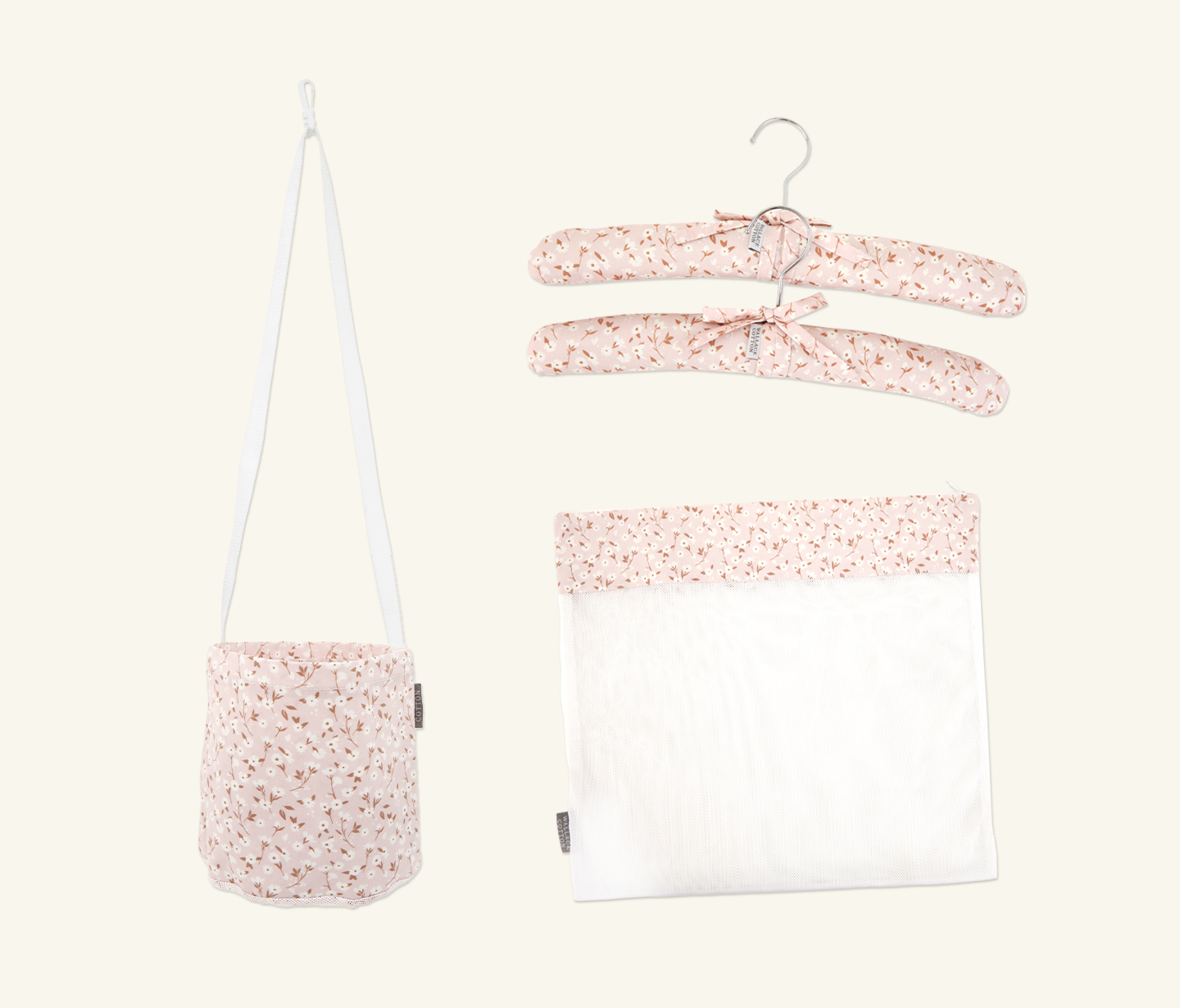 Our accessories are thoughtfully designed to make everyday tasks more beautiful. Whether it’s for the bathroom, laundry or wardrobe, discover perfect pieces to add a little style to your home and for easy gift inspiration. Our Ruby accessories range includes a coat hanger set, a shower cap, a peg bag, a delicates bag and a handy measuring tape. Our Ruby accessories feature a sweet floral pattern designed in-house in pale pinks, white and tan.