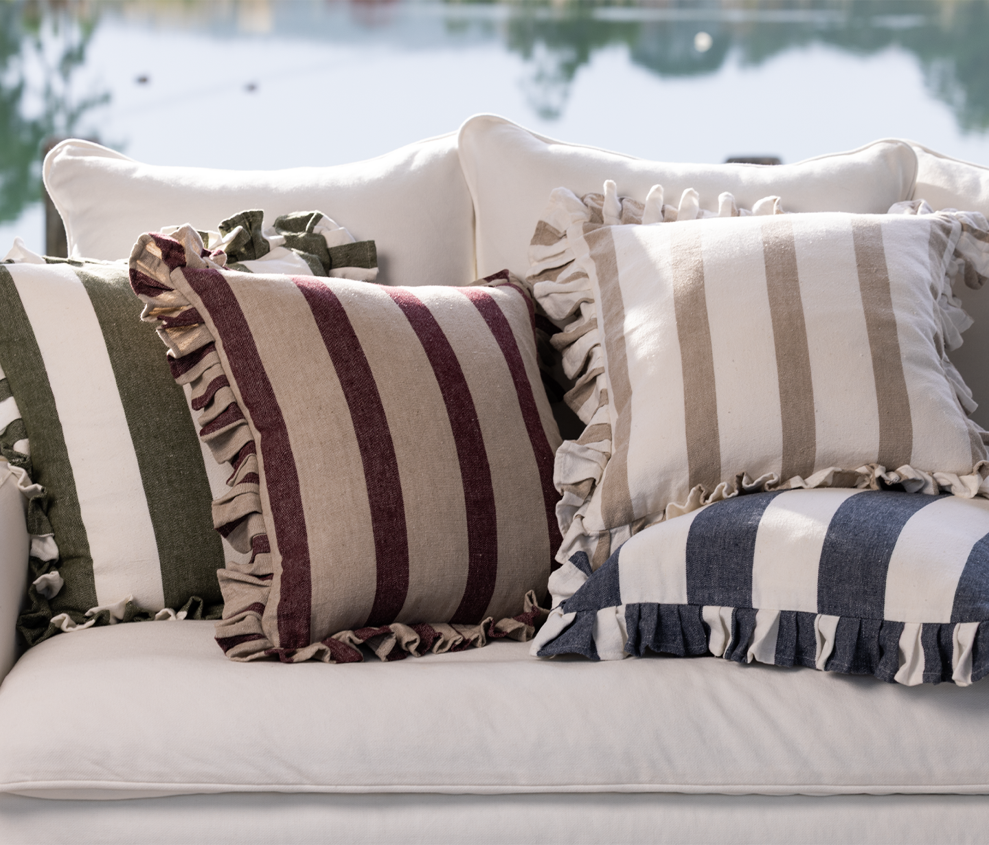 Add a little fun and whimsy to bed and sofa styling with our Cooper and Alba cushion covers in bold stripes with frilled sham detail for colour, texture and charm. Our Cooper and Alba cushion cover offers a nod to the ‘cottagecore’ aesthetic which celebrates simple living and a rural lifestyle that embraces traditional skills such as baking and sewing. Perfect for your home, holiday home or country cottage, both our Cooper and Alba cushion covers are made from 82% cotton and 18% linen.