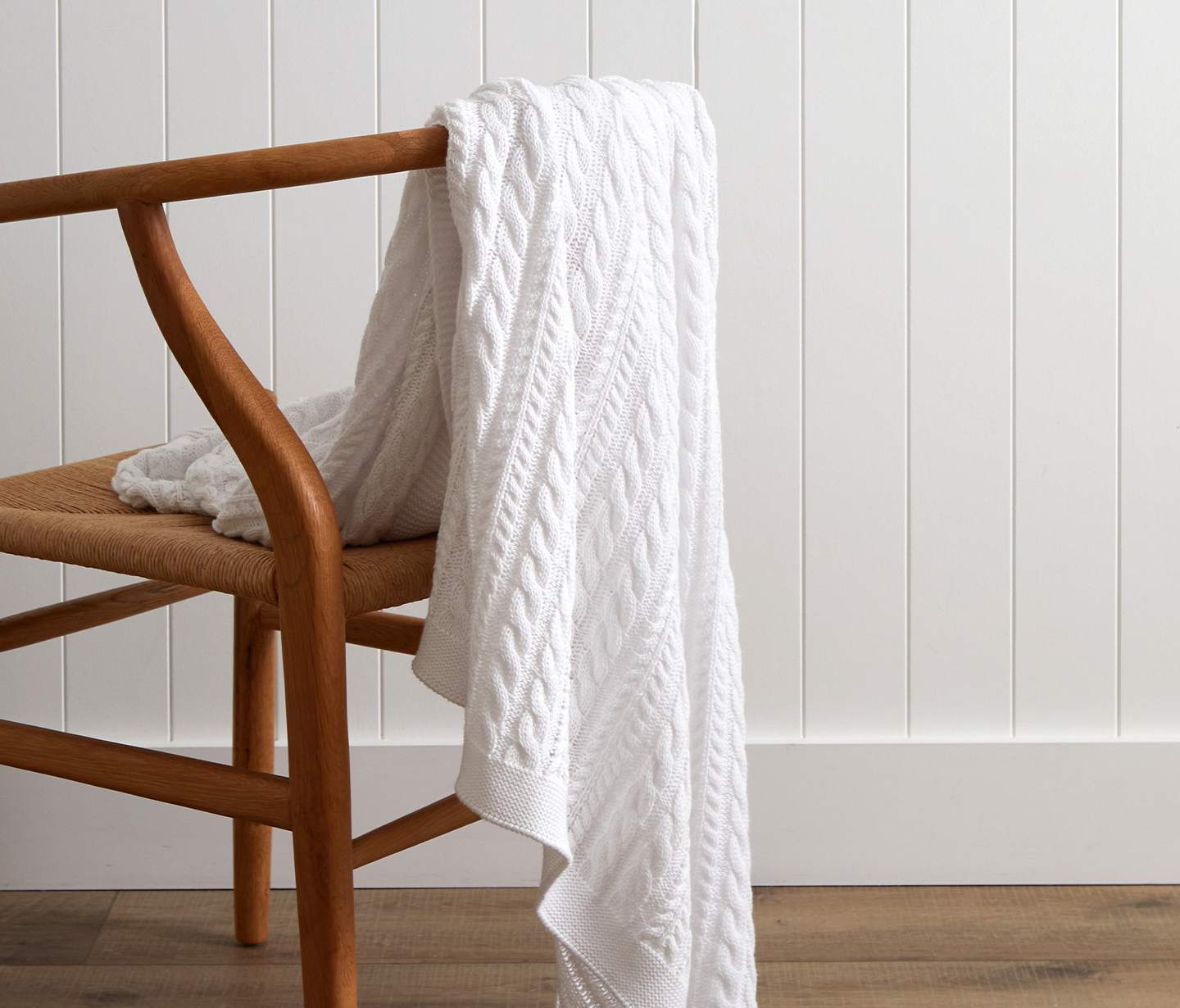 Throws and blankets are lovely accent pieces to soften spaces and add warmth. Our Souvenir knitted cotton throw features a cable knit stitch and is designed in soft blue, rose pink and fresh white. Our Souvenir range is made from soft, pure cotton and crafted by artisan knitters in Northern India.